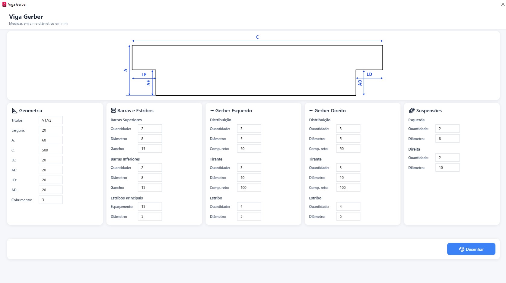 Plugin para detalhar vigas pré-moldadas no software Autodesk AutoCAD.